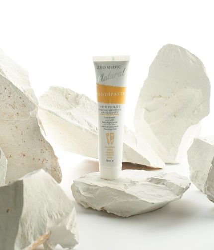 Začnite uporabljati naravno zobno pasto z naravnim zeolitom, ki sicer privlači in nase veže škodljive snovi (pesticide, težke kovine …). V pasto smo dodali tudi eterična olja mentola, mete, pomaranče ter naravni nadomestek sladkorja ksilitol in gel aloe vere. Brez umetnih barvil, dišav in brez fluora.